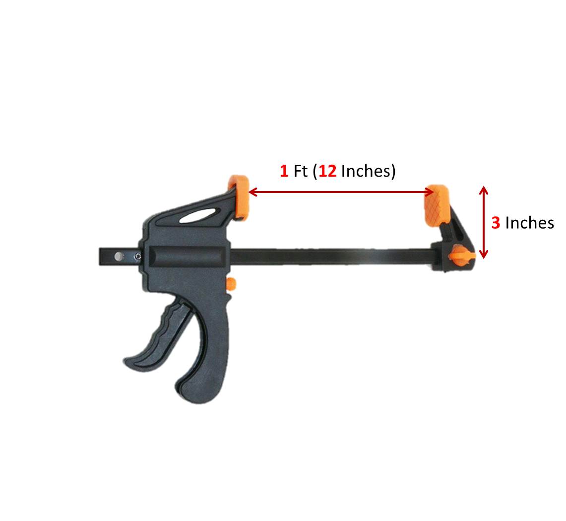 Perfect usage for wood working, packaging and furniture projects. Clamp Type: F Clamp, Length 12 Inch (1 Ft). You can clamp the wood up to 12 Inches.