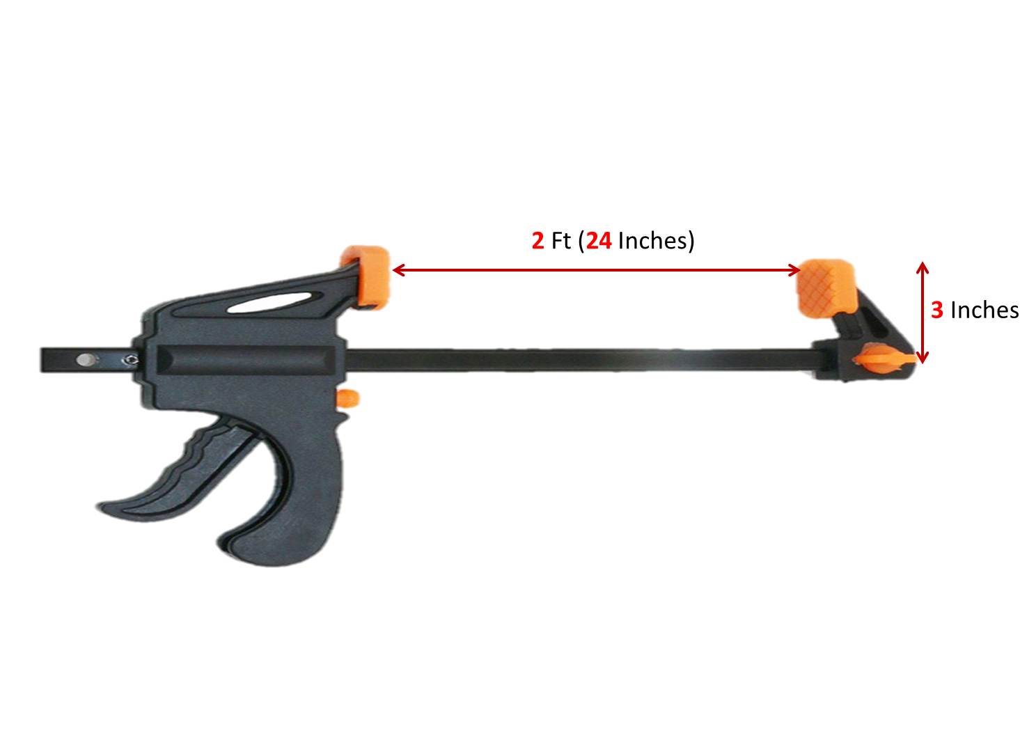 Perfect usage for wood working, packaging and furniture projects. Clamp Type: F Clamp, Length 24 Inches (2 Ft). You can clamp the wood up to 24 Inches(2 Ft).
