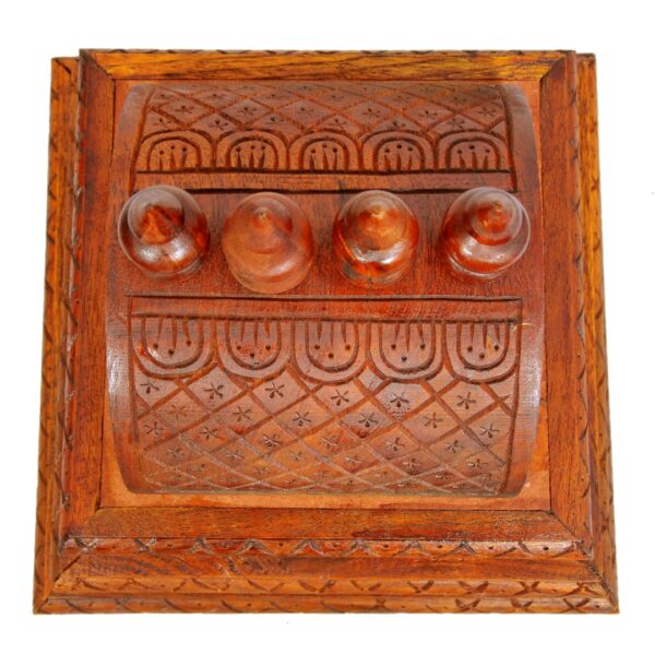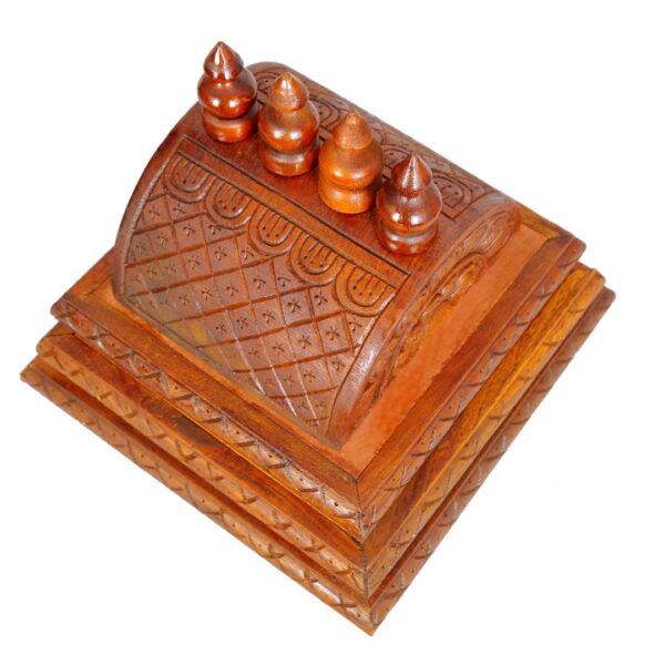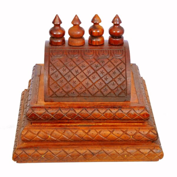 Hand Polish in walnut brown color. Total height including Kalash is 11 Inches. It can be used on top of wooden Mandap/Mandir/Temple.