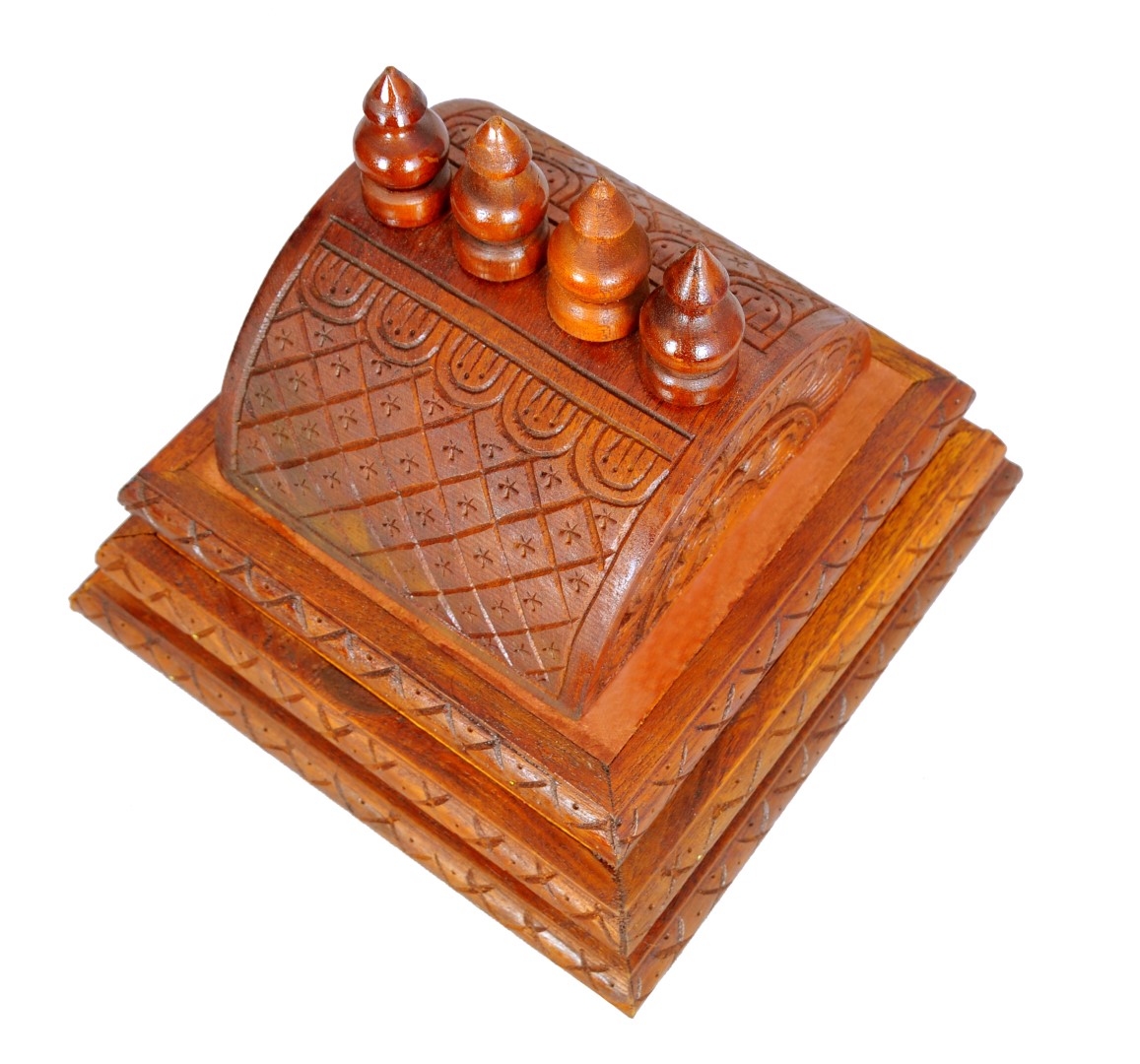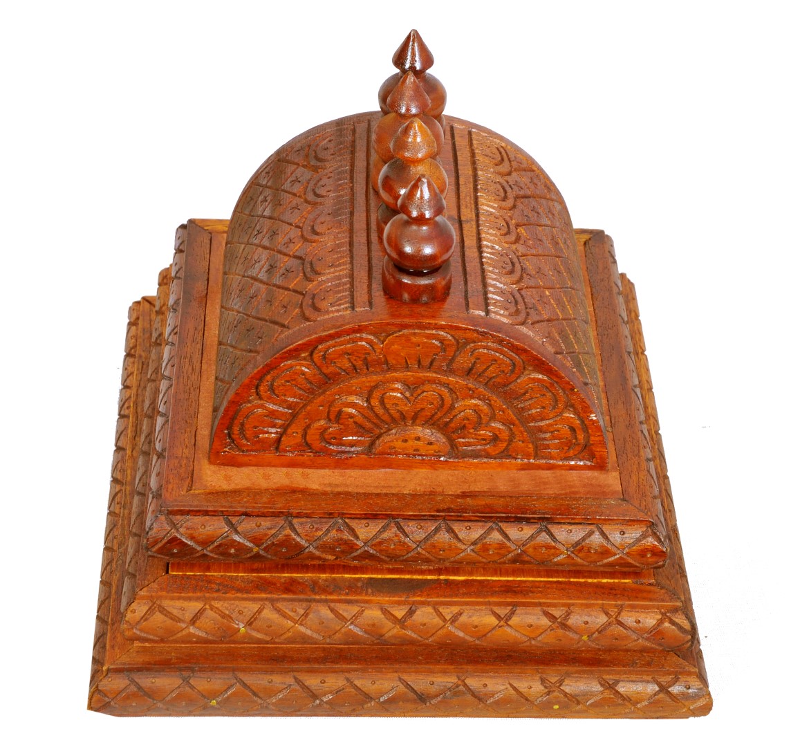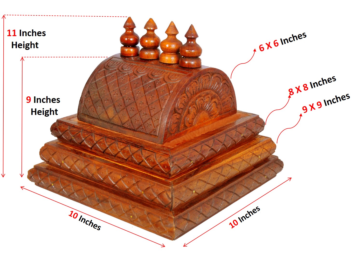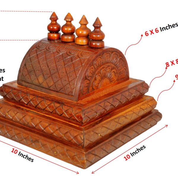 Dome(Gopur) for the wooden Mandap.It has 3 steps as shown in the image. Bottom to top, steps sizes in Inches are 10 X 10, 9 X 9 and 8 X 8.
