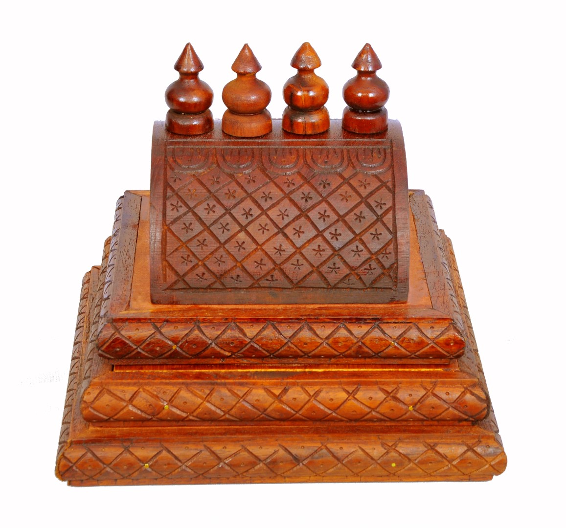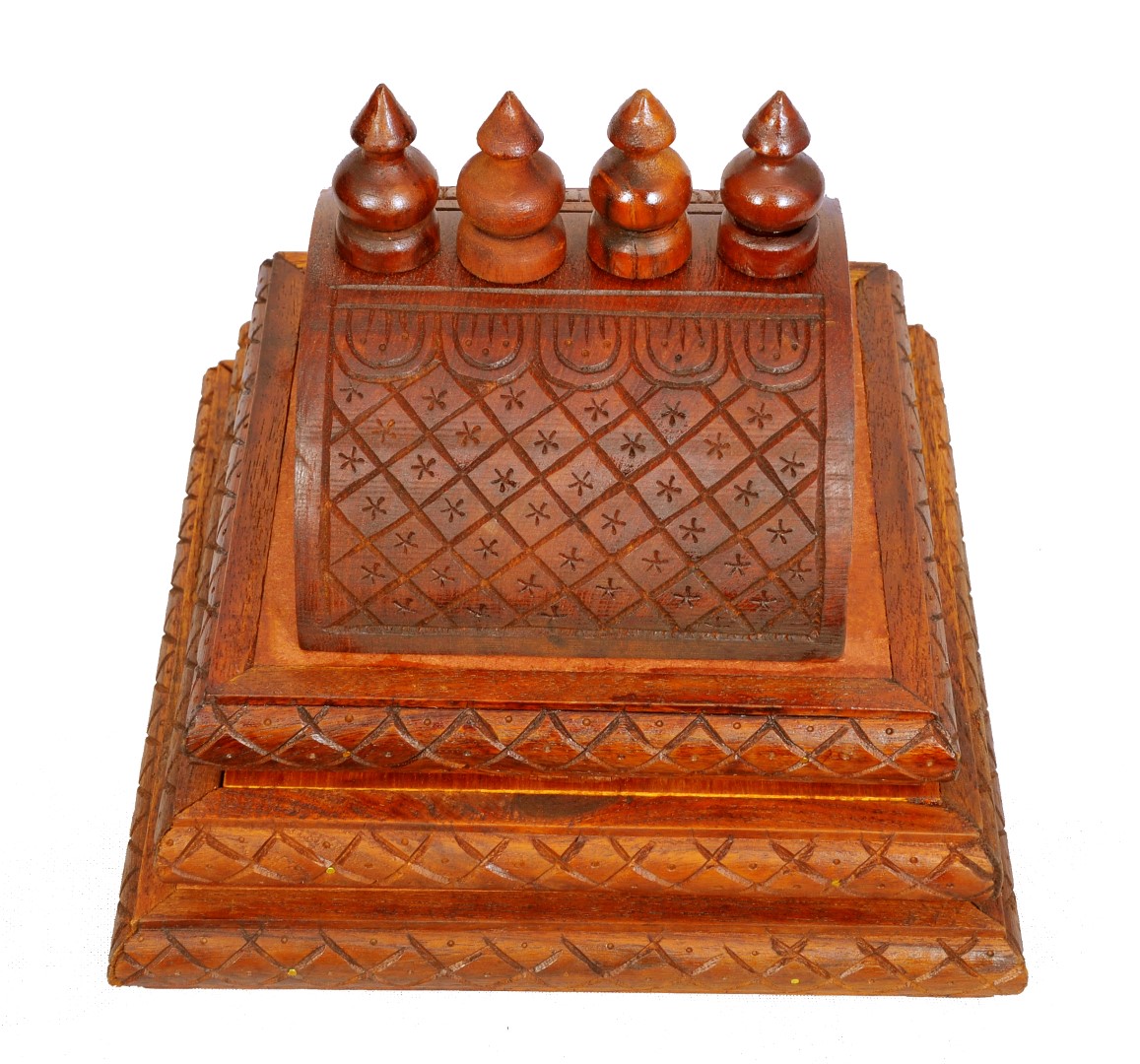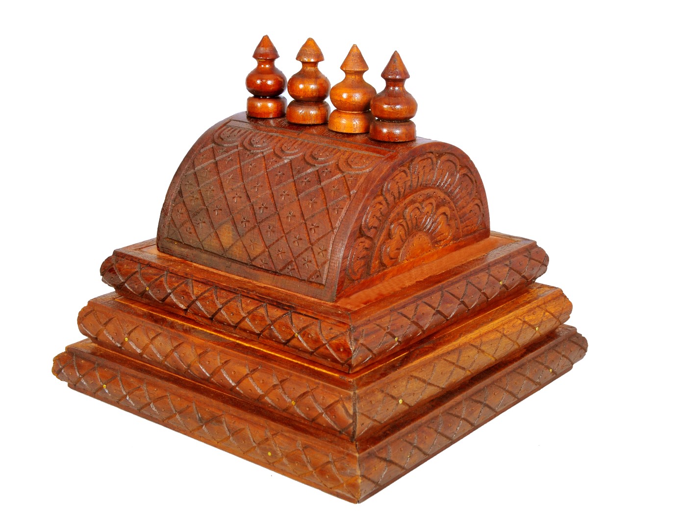 Dome(Gopur) for the wooden Mandap.It has 3 steps as shown in the image. Bottom to top, steps sizes in Inches are 10 X 10, 9 X 9 and 8 X 8.