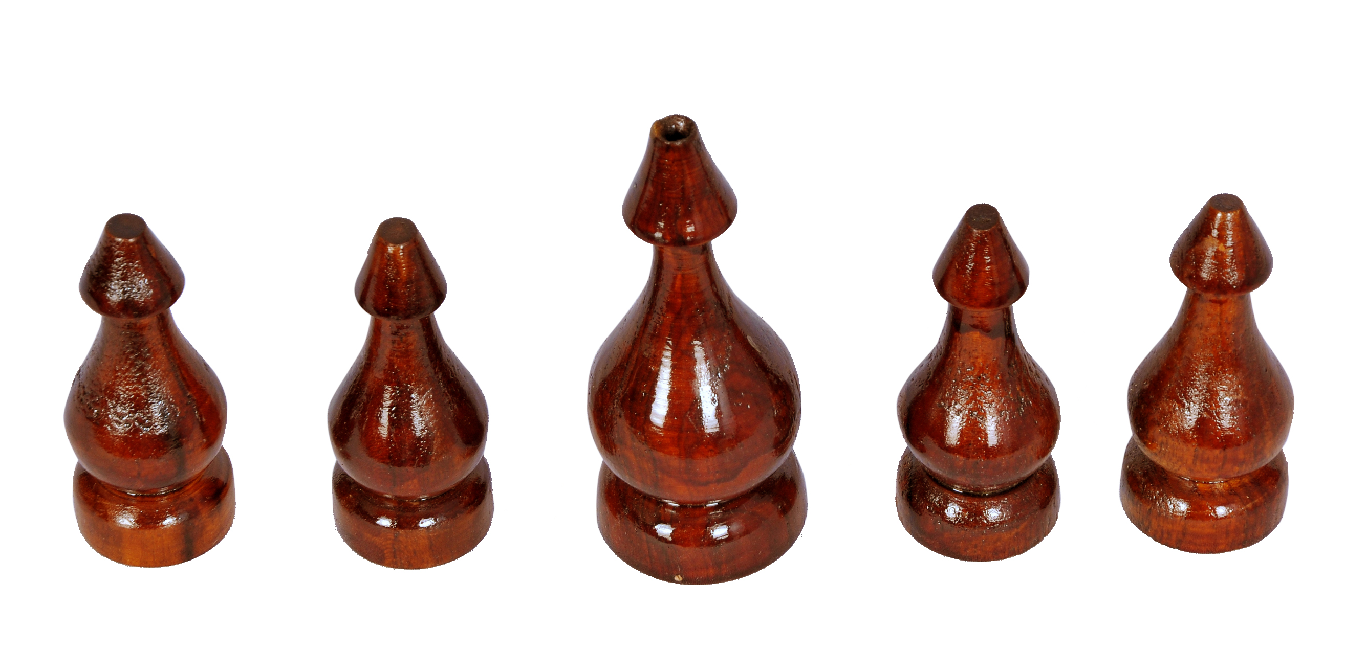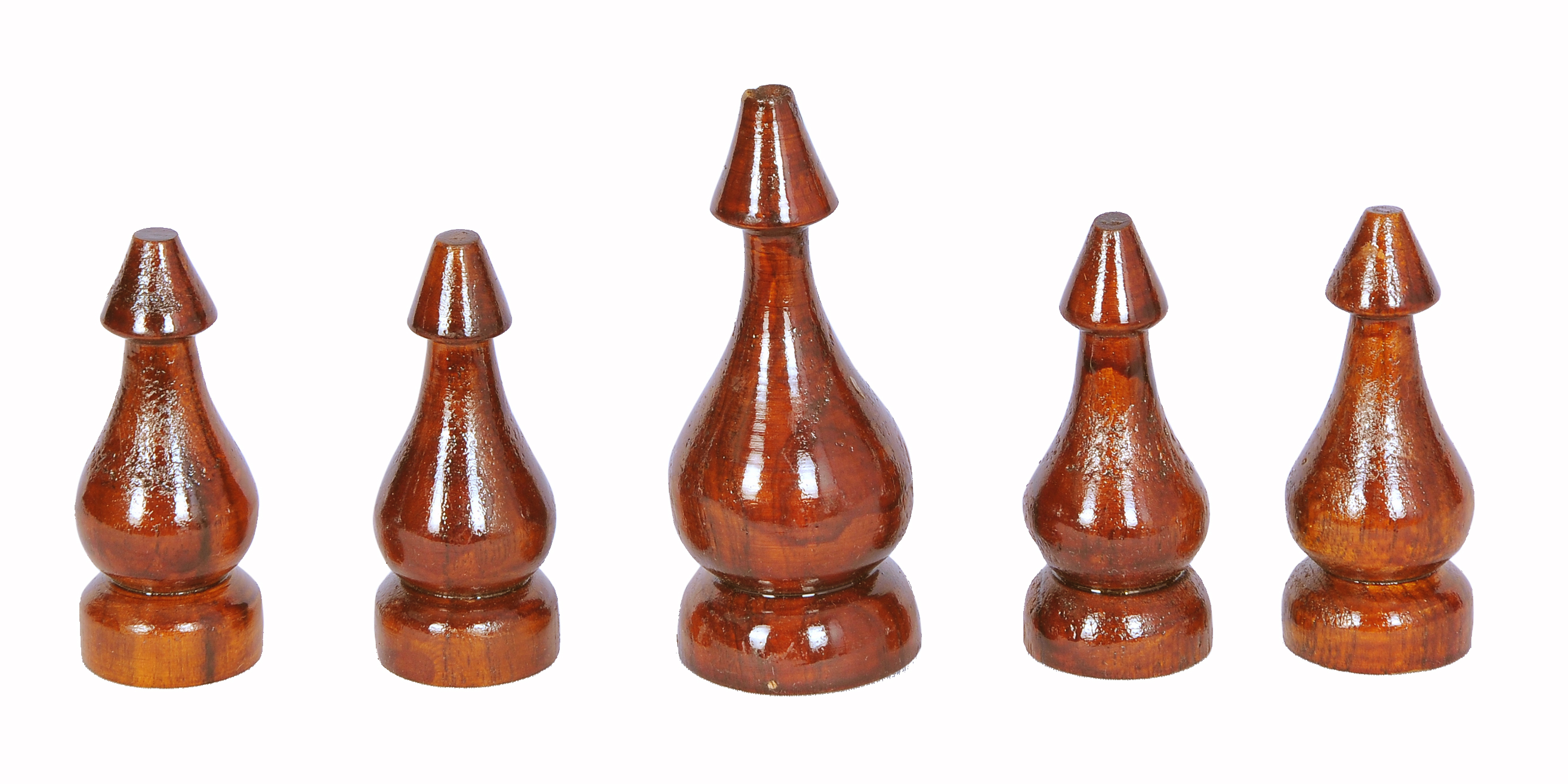 Set of 4 + 1 Teak wooden Kalash for Pooja Mandap. Hand Polish finish in walnut color.