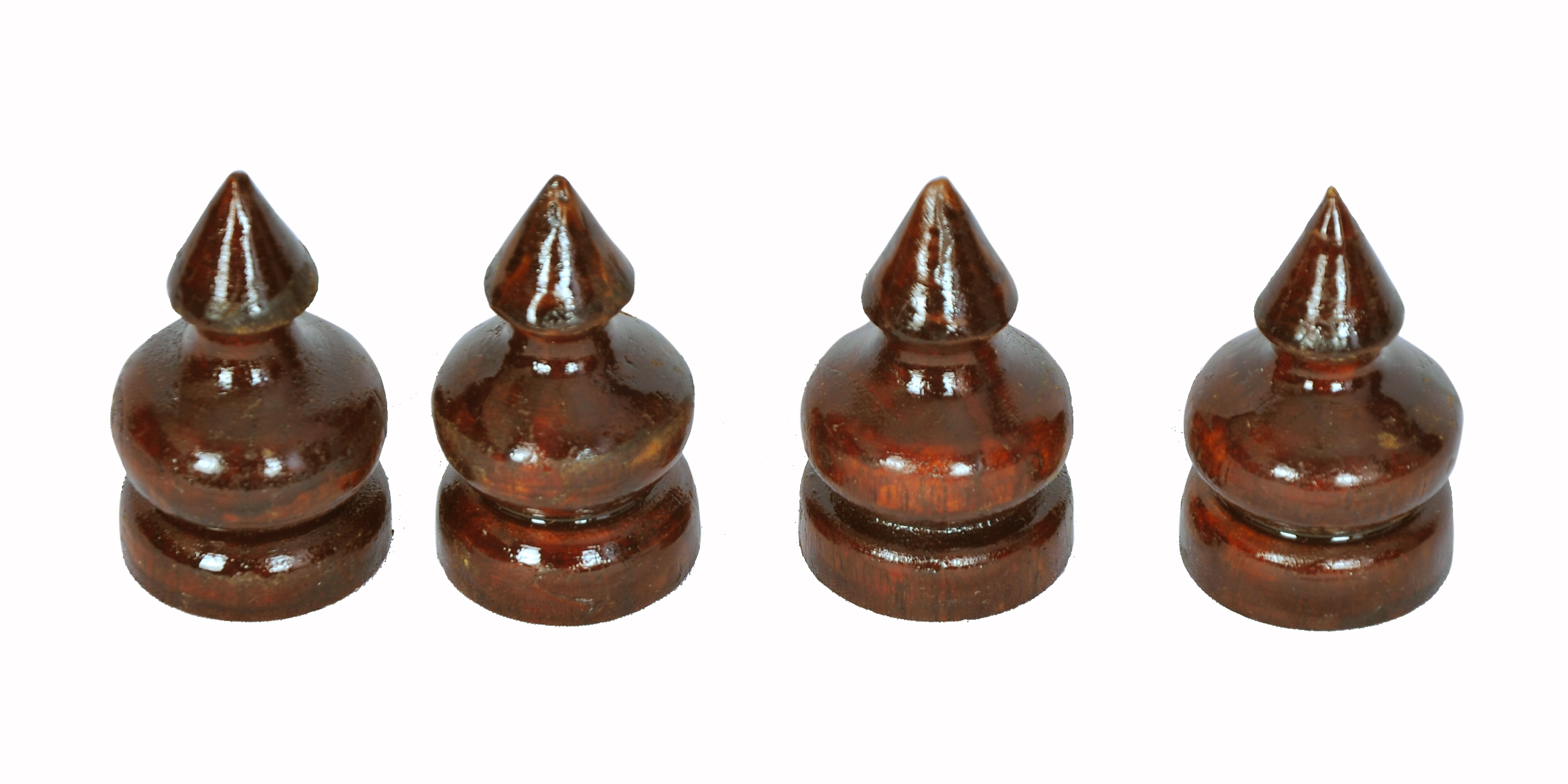 Set of 4 wooden Kalash for Pooja Mandap. Hand Polish finish in walnut Brown color. 4 Small kalash of Height 2 Inches and thickness 1 Inch Please check the size of the Kalash before ordering.