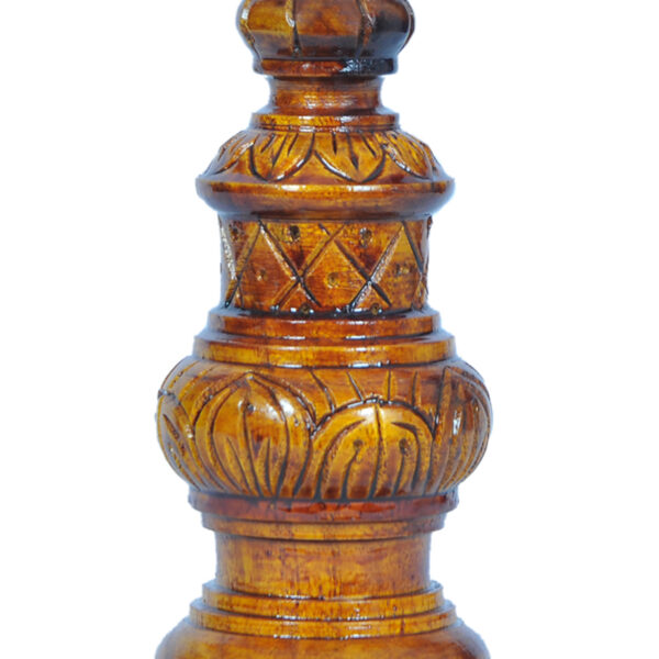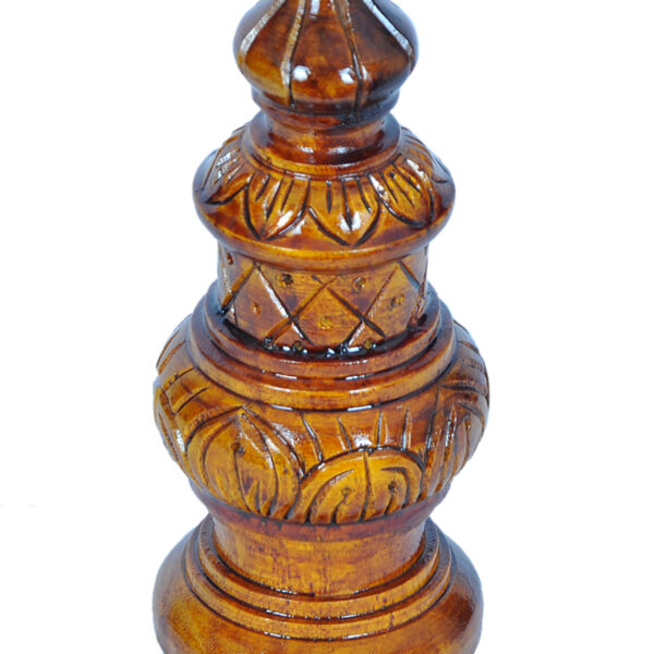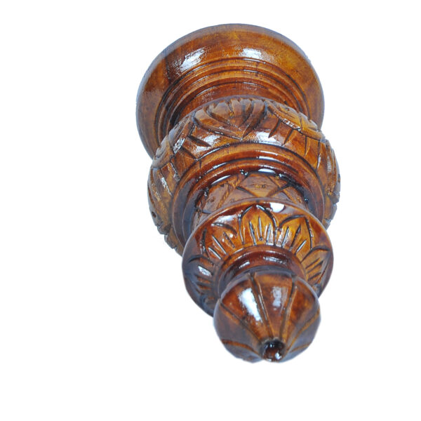 wooden kalash made of Teak wood with Carving. Height: 6 Inches and Diameter: 3 Inches. Hand polish finish in Teak wood Brown color.