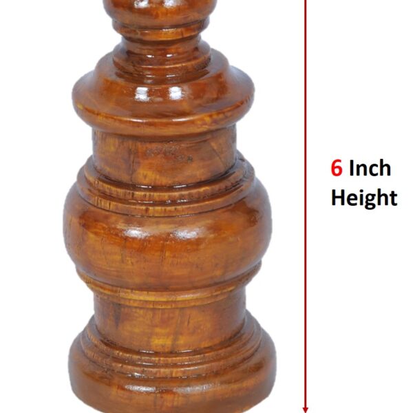 wooden kalash made of Teak wood. Height: 6 Inches and Diameter: 3 Inches. Hand polish finish in Teak wood Brown color.