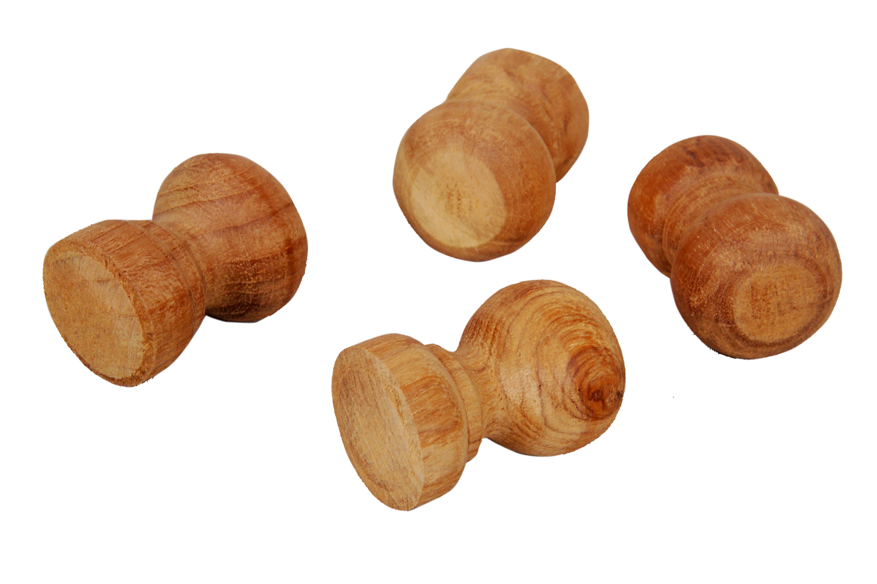 The package contains set of 4 unpolished Teak wooden Knobs.