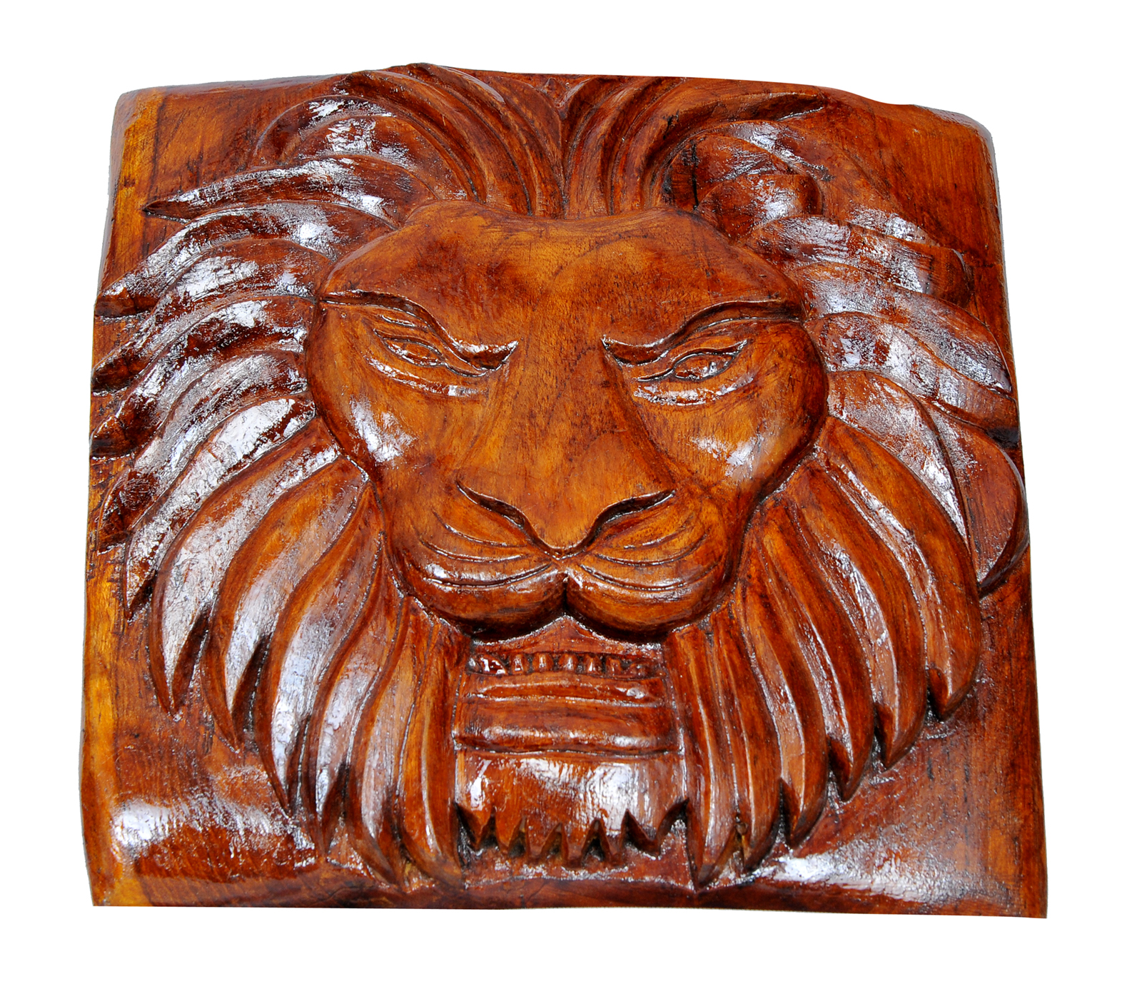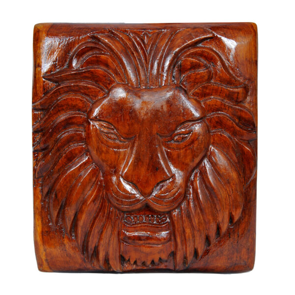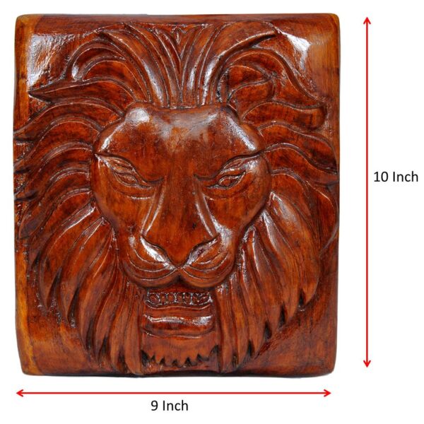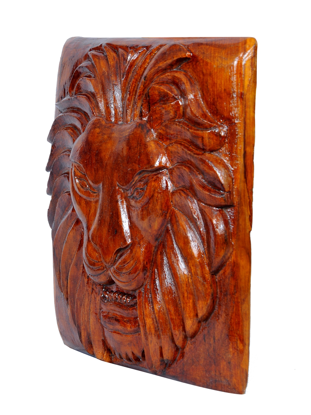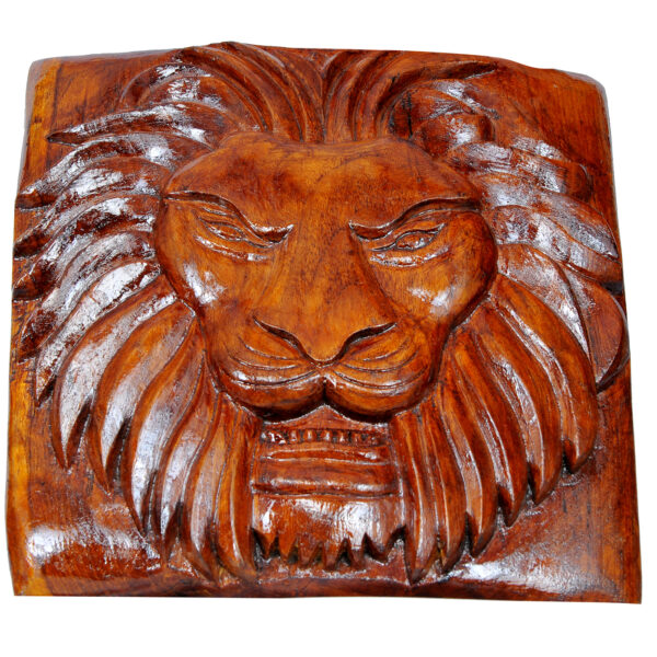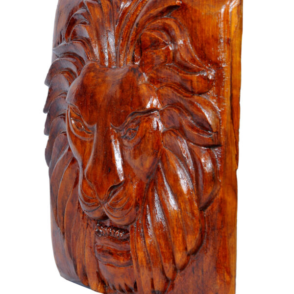 Jeevan Raj Veer Chen Teak wood carved Lion face.Made from Teak wood and hand polish finish in walnut brown color.