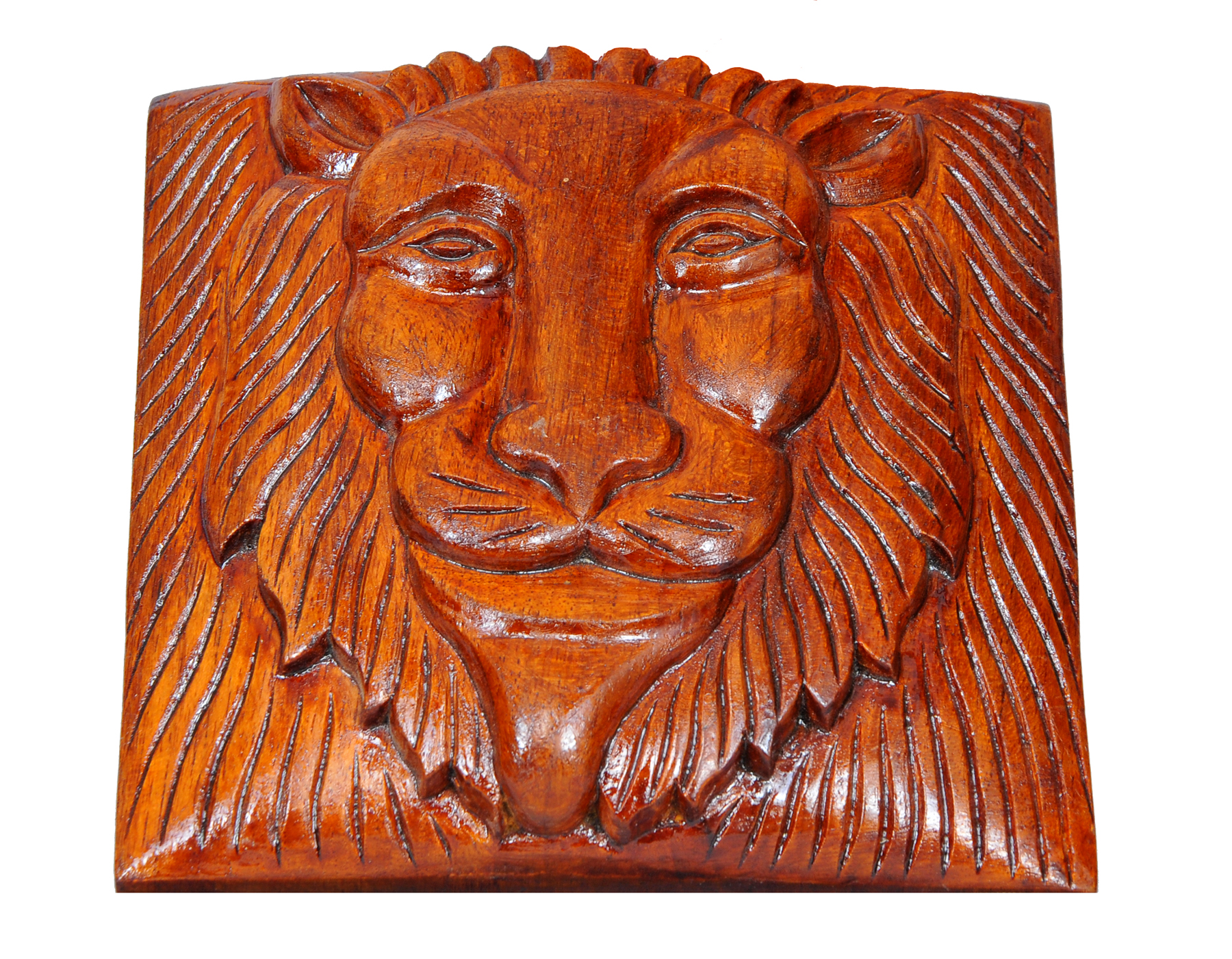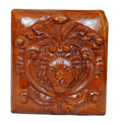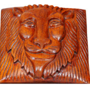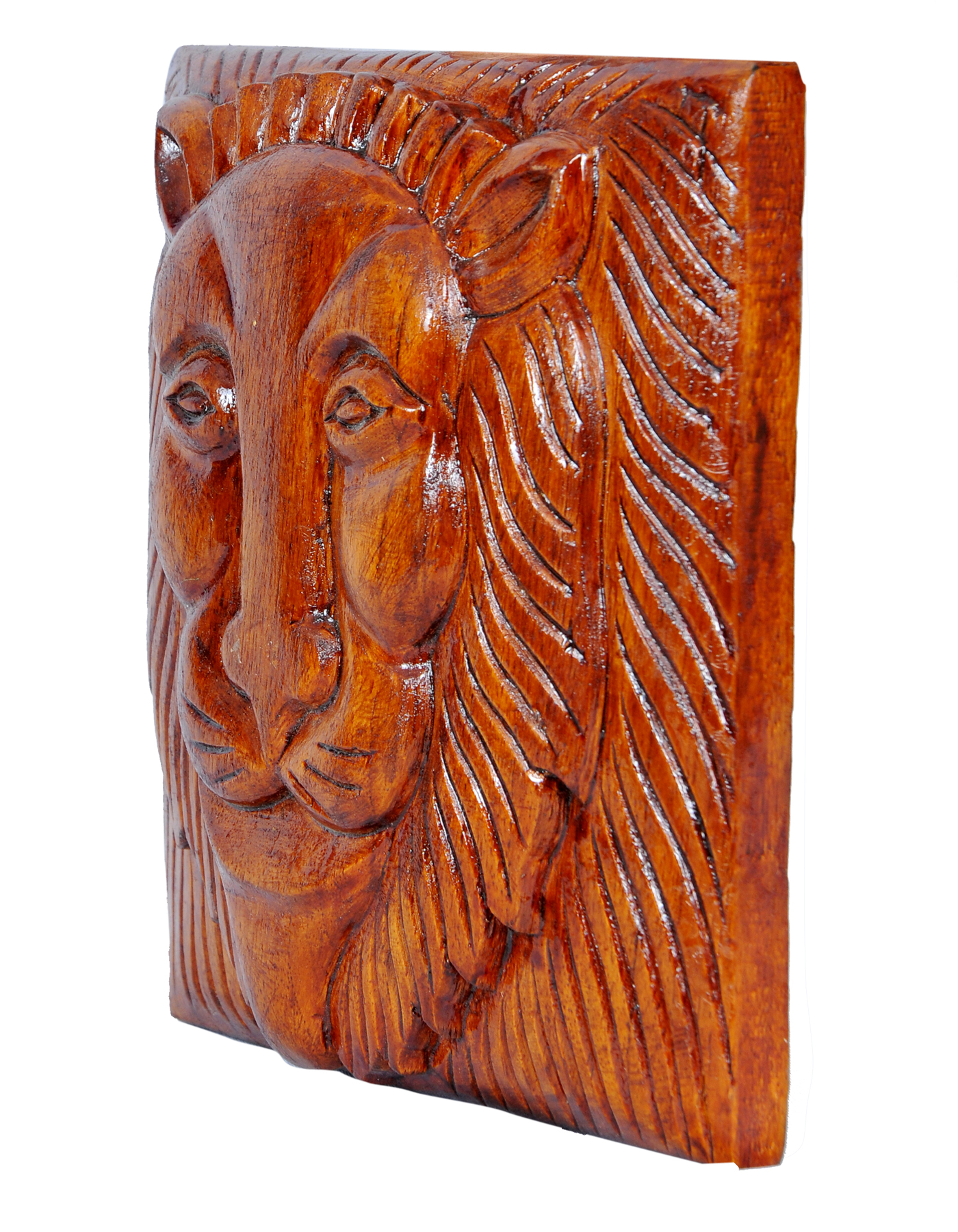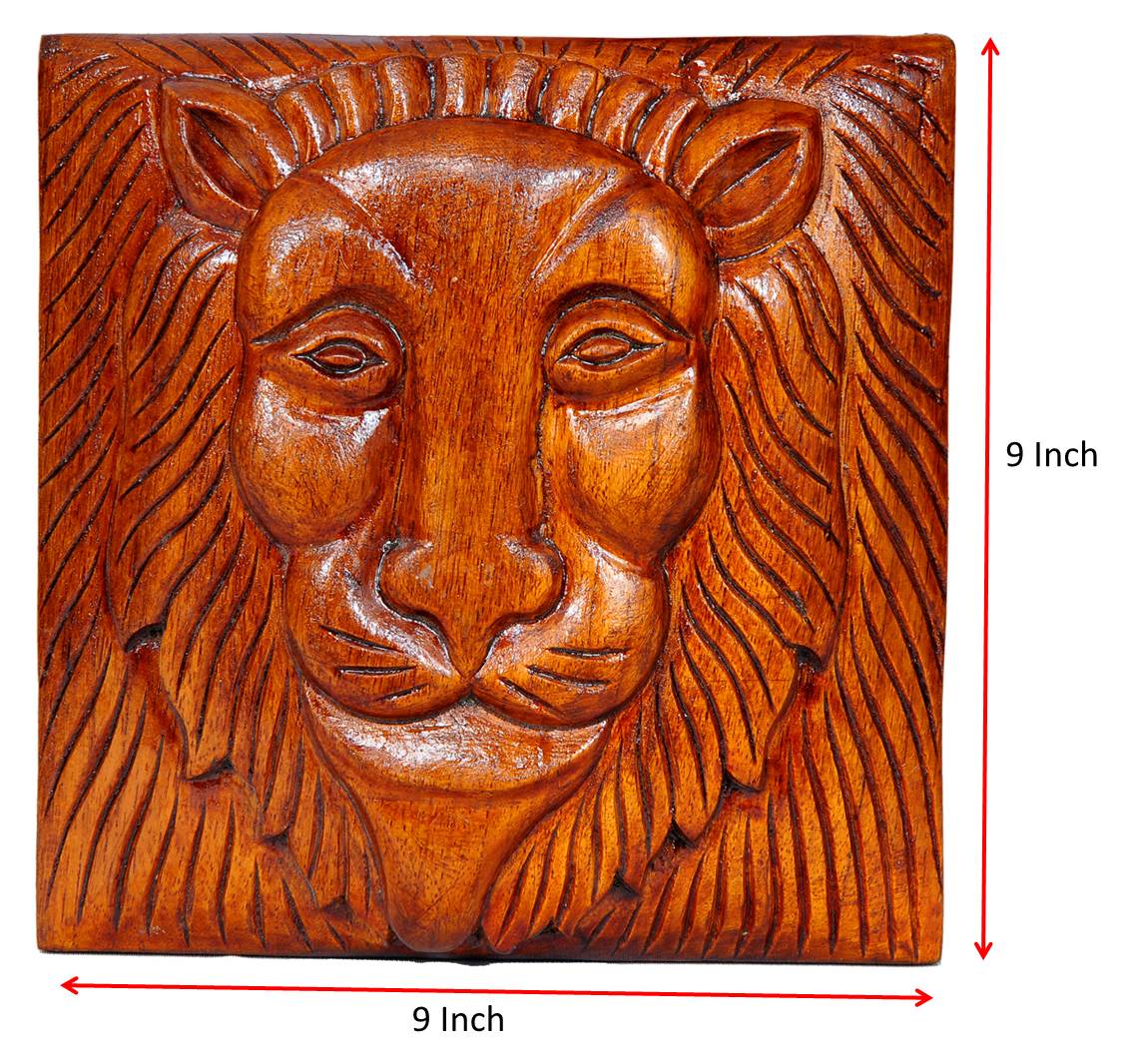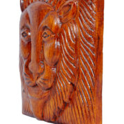Jeevan Raj Veer Chen Teak wood carved Lion face. Made from Teak wood and hand polish finish in walnut brown color.